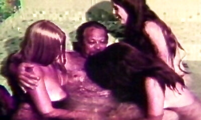 Pool party group sex among hot babes and horny guys in vintage clip